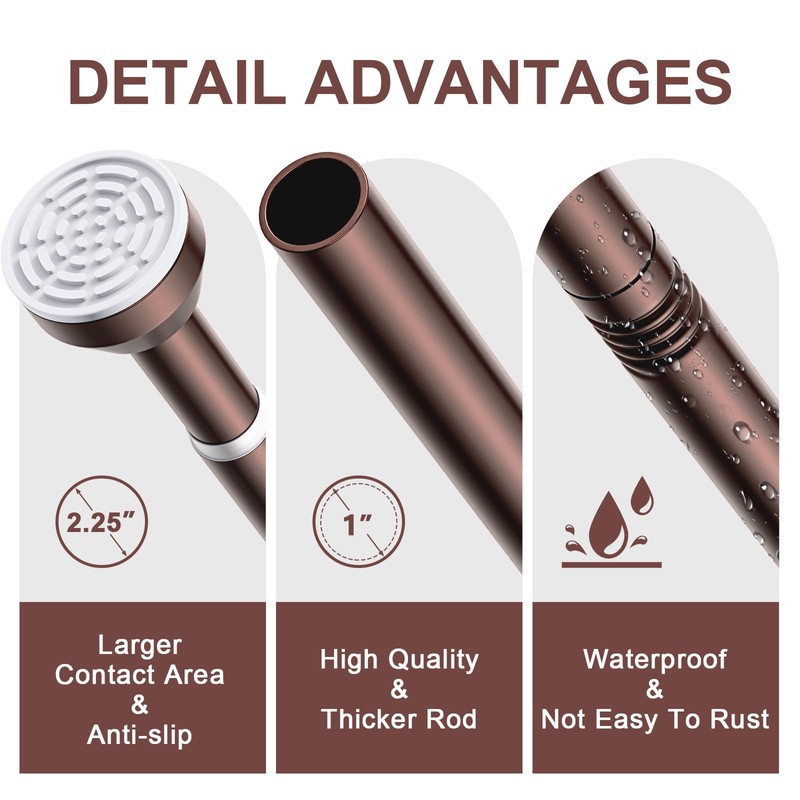 - Easy Installation: You only need to extend this shower curtain rod against each wall and tighten it.