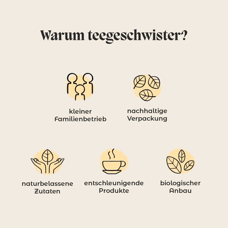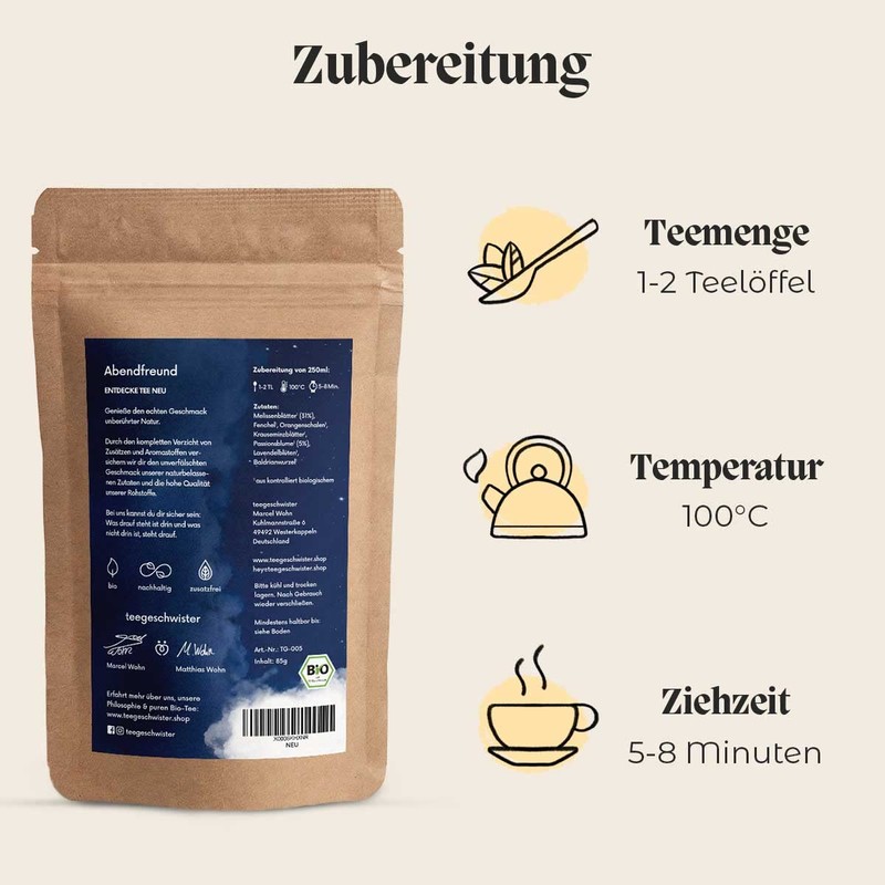 teegeschwister® | BIO Abendtee | Kräutertee zur Entspannung vor dem Einschlafen | naturbelassener Melissentee mit Baldrian und Passionsblume | frei von Zusätzen | 85g