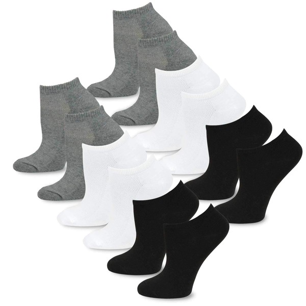 TeeHee Everyday Casual Low Cut Ankle No Show Socks with Mesh for Men 10-13 12 Pairs (White-Black-Grey)