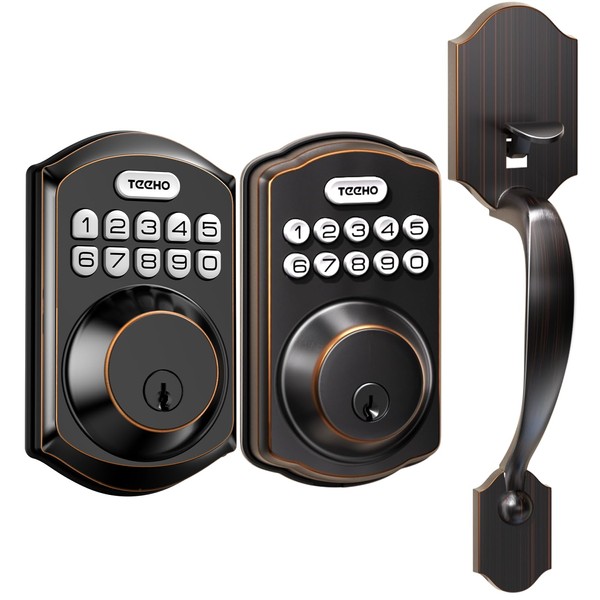 TEEHO Keyless Entry Door Lock - Electronic Keypad Deadbolt with Handle Set - Front Door Handles - Heavy Duty - Door Lock with Code - 2 Keys - Auto Lock Feature - Easy Installation - Oil-Rubbed Bronze