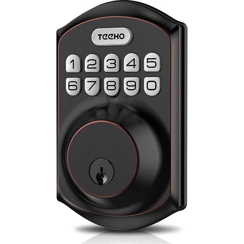 TEEHO Keyless Entry Door Lock with Keypad Smart Deadbolt Lock Front Door Lock 2 Keys - Oil-Rubbed Bronze