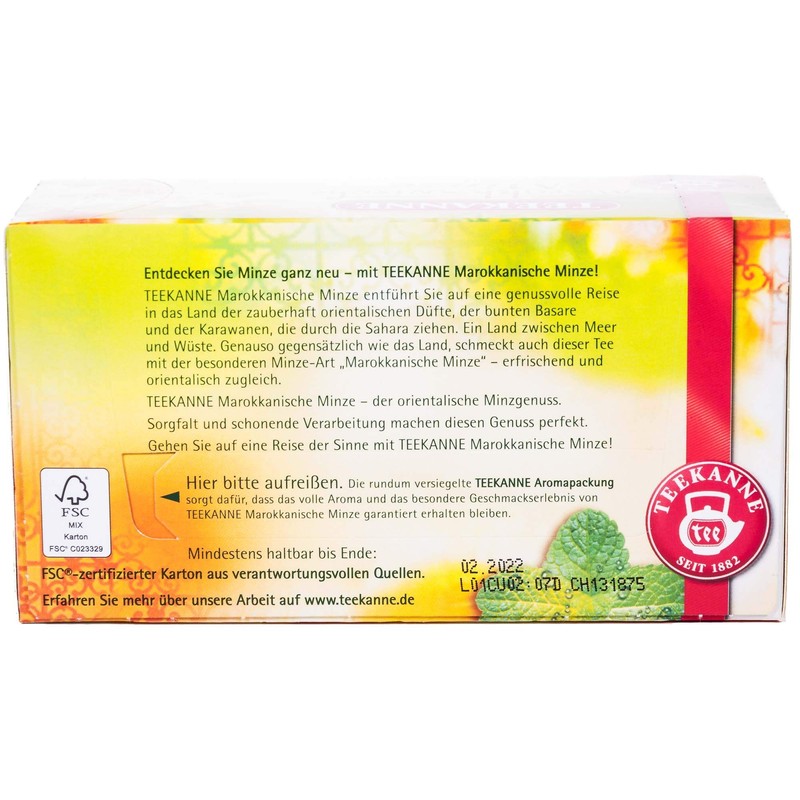 - TEEKANNE Moroccan mint takes you on an enjoyable journey to the land of magical oriental fragrances, colourful bazaars and caravans that pass through the Sahara. A land between sea and desert.