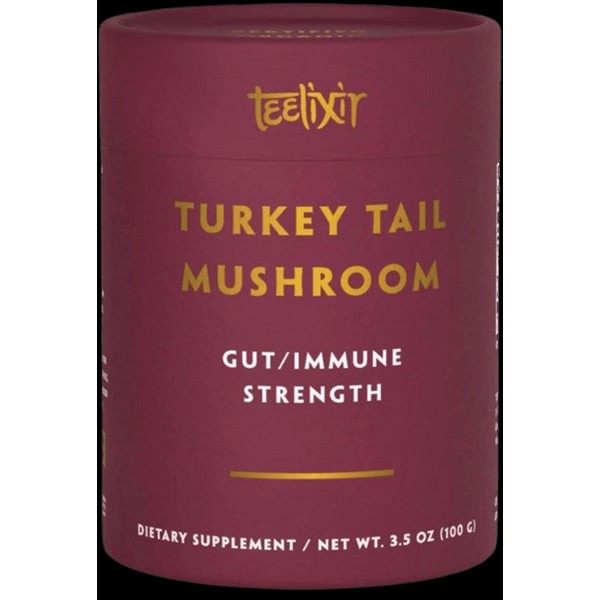 Teelixir Organic Turkey Tail Mushroom Gut/Immune Strength with Turkey Tail mushroom (Trametes versicolor,) one of the most widely studied and important medicinal mushrooms in the world. In Asia, Turkey Tail mushrooms have been used for thousands of years as a medicinal tea to promote excellent health, longevity and overall well being.