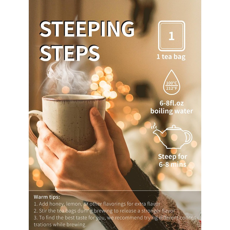 - [100 COUNT ECO-CONSCIOUS TEA BAGS] - Our premium tea bags are made from non-GMO plant fiber, and tea bags are unbleached and compostable. No string and no tag. No extra waste - just healthy & delicious tea!
