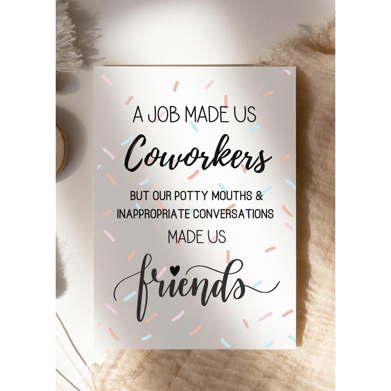- Unique Bond Celebration: Celebrate the special and sometimes unorthodox bond you share with your coworker. This card humorously acknowledges how shared quirks and candid conversations transformed a mere workplace association into a genuine friendship.