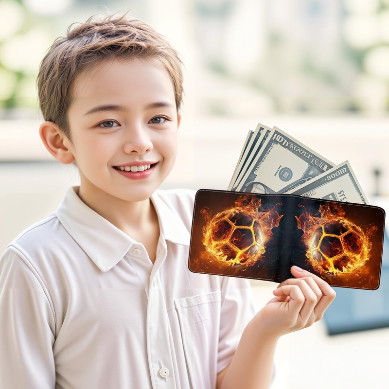 - 【Stylish and Wear-Resistant】: Featuring cool fire soccer patterns on both the front and back, this bifold wallet for teen boys is crafted to showcase individual personality. Stitched meticulously with wear-resistant nylon threads to resist splitting, it's a stylish and enjoyable choice for teen boys