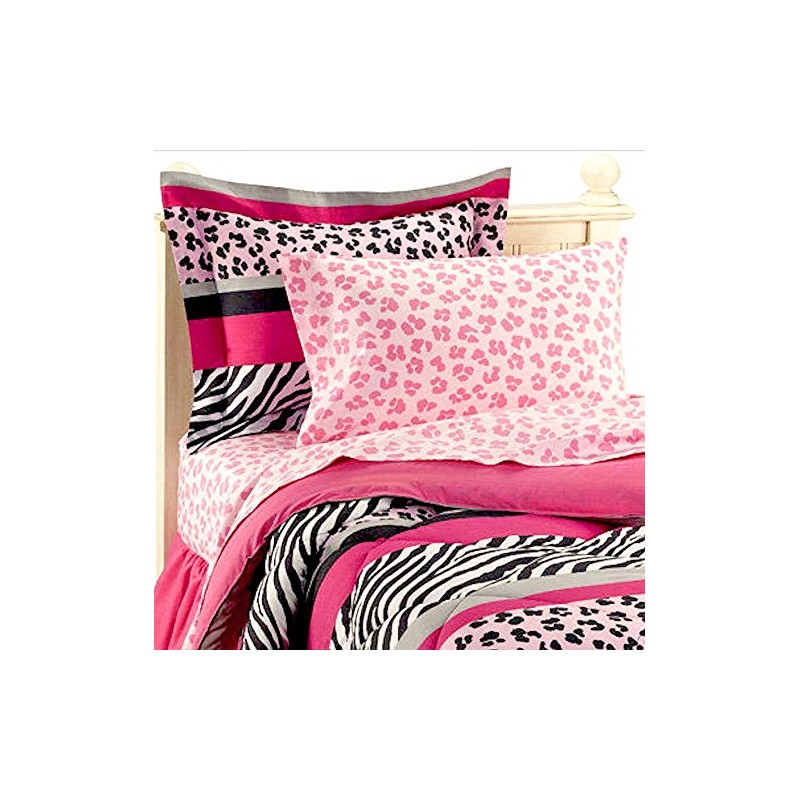 Teen Girls 6pc Jungle Queen Pink & Black Safari Zebra Leopard Comforter Sham(s) Bedskirt & Sheet Set - NOT Included: Pillows & Drapes (Twin Size)