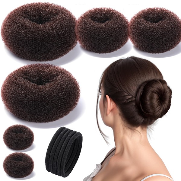 Teenitor Donut Hair Bun Maker Set, Hair Bun Shaper Set with Large, Medium, Small Hair Donuts For Buns, Hair Accessories For Girls, 5 Elastic Bands