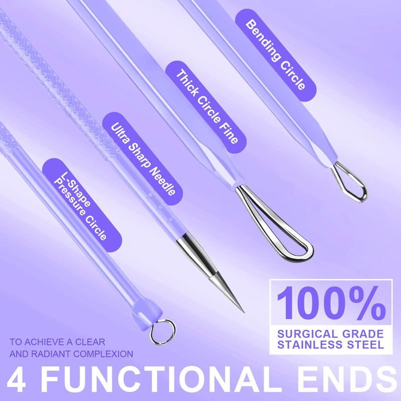 - Stainless Steel Pimple Popper Set: Crafted from surgical-grade stainless steel, this blackhead removal kit is the perfect starter set for achieving a clearer complexion