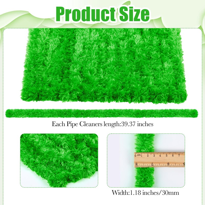 Teenyyou 24 Pcs 30mm x 39.37 Inch Extra Thick Jumbo Pipe Cleaners Bulk Giant Fur Fluffy Pipe Cleaners Chenille Stems Craft Supplies for St. Patrick Easter Gifts DIY Project(Green)