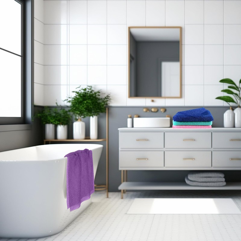 Enjoy a refreshing bath with our exfoliating shower wipes, with colors ranging from beige to bright orange and warm brown. Use these robust bath towels for daily skin exfoliation and revitalization.