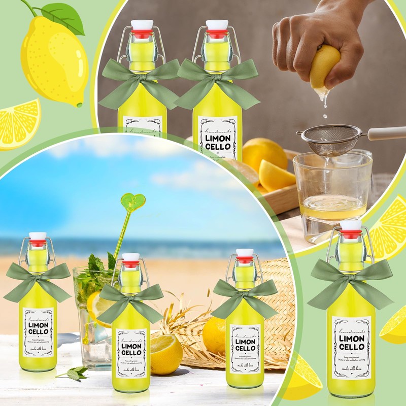 • Combination Set: each set has 8 sets of glass coquito bottles with stoppers, 8 stickers printed with Lemoncello, and a bundle of green ribbons, which are complete for your daily use and gift-giving needs; The capacity of the glass bottle with stopper is about 8.5 oz/250 ml; The size of the customized sticker is about 1.69 x 2.48 inches/4.3 x 6.3 cm; The size of the ribbon is about 72.18 feet/22 meters
