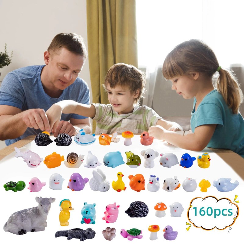 160pcs Mini Resin Animals 160 Styles Variety Tiny Animals Figures Miniature Little Small Animal Figurines Bulk for Micro Fairy Garden Landscape Accessories Hide Crafts Decor Aquarium