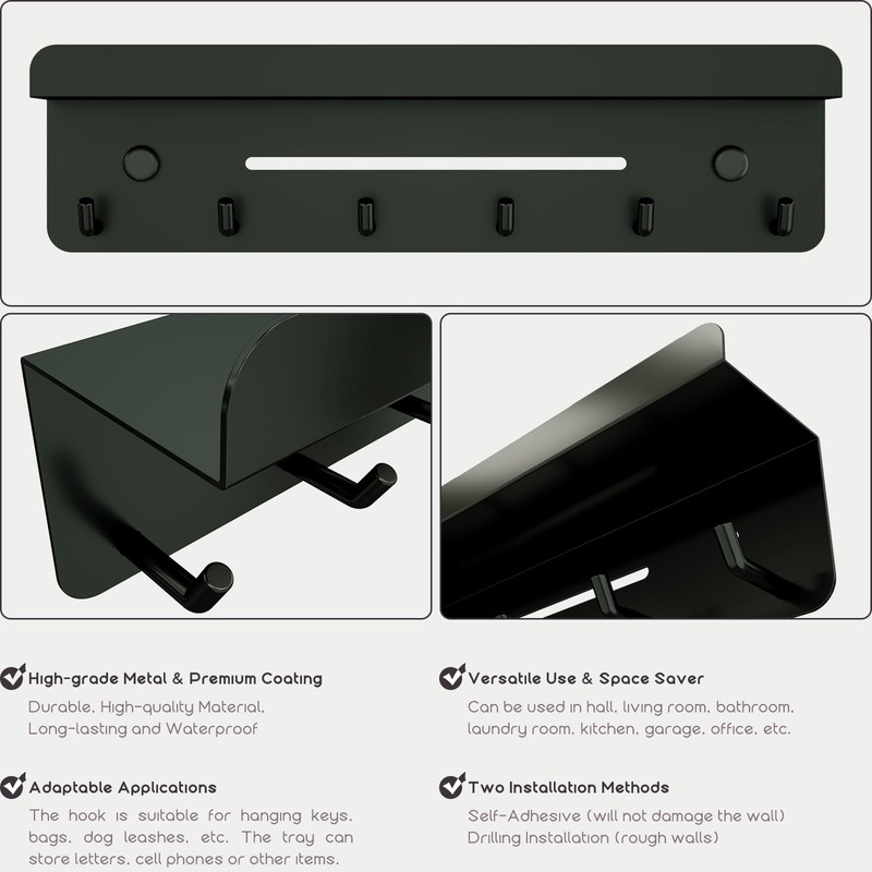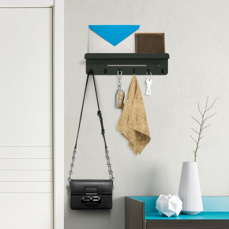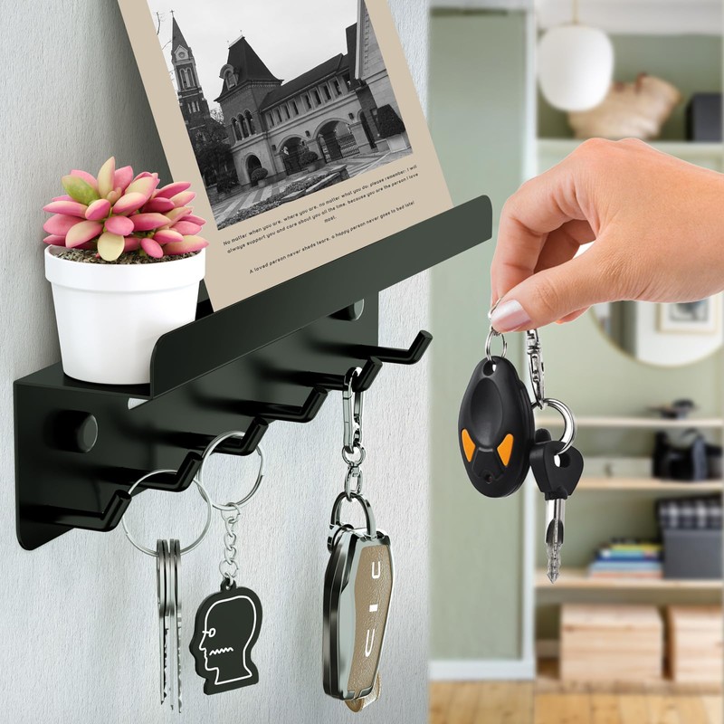 - [Easy to Organize] This key holder features 6 hooks and a mail tray, making it easy to keep everything in one place and hold multiple keys.Key Holder is a great way to keep your space clutter-free and looking great. Plus, its sleek black design fits in seamlessly with any decor.