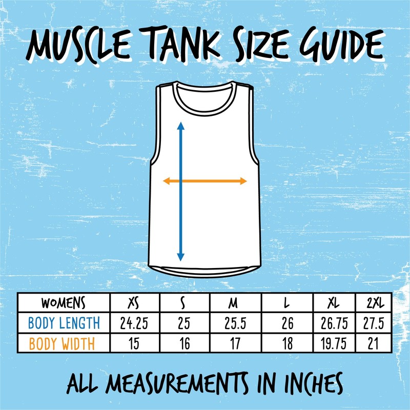 - Printed on a Womens Muscle Tank. Slightly Fitted. For a looser fit, we recommend ordering one size up.