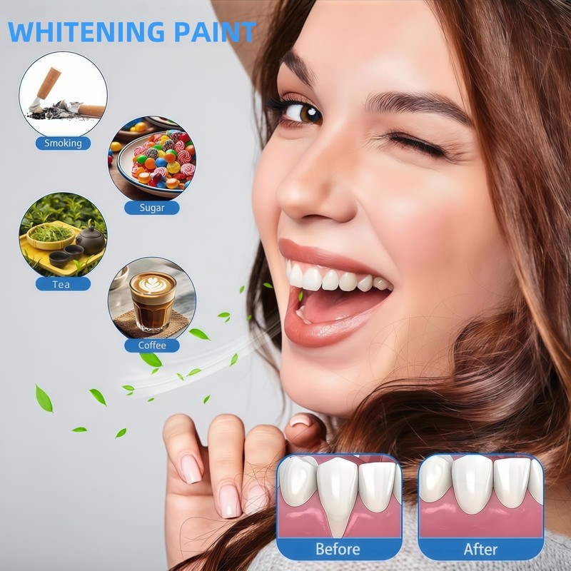 - LONG-LASTING FRESHNESS:Our whitening teeth bring you a long-lasting and refreshing usage experience. This tooth whitening paste can not only remove stains and whiten teeth. Meanwhile, the tooth polishing paste helps you maintain oral health and keep your breath fresh. This teeth whitening paint offers you long-term oral protection, keeping your teeth white for a long time. With continuous use of the white tooth paint, your teeth can be whitened and yellowing can be improved, allowing you to naturally show a charming smile anytime and anywhere
