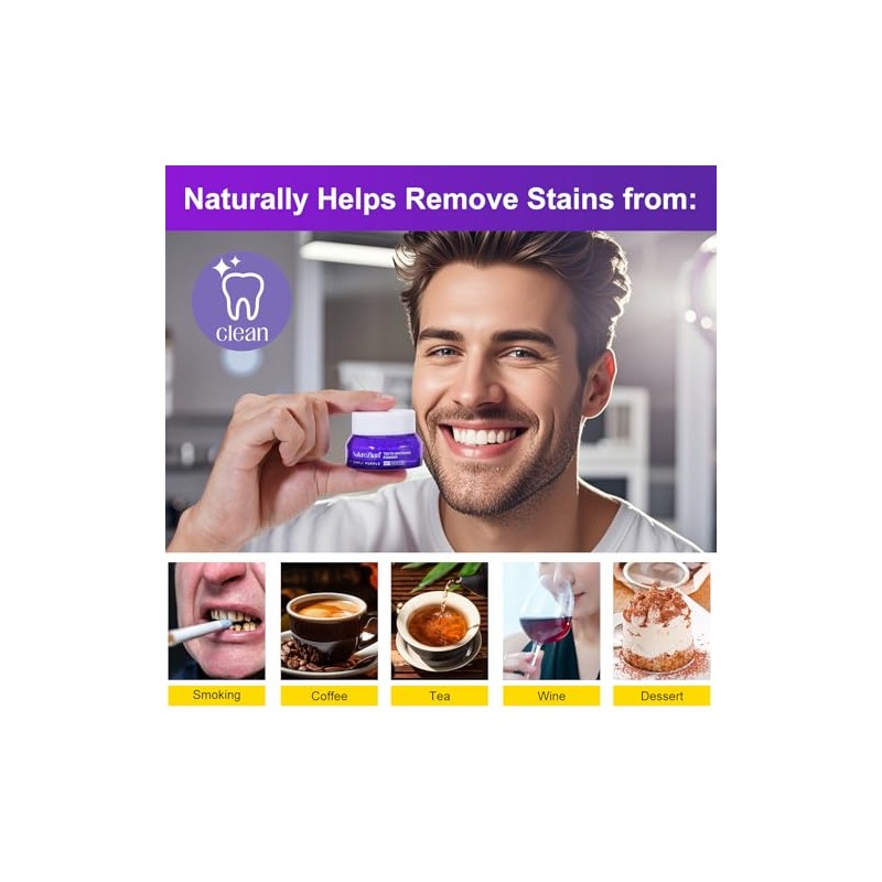 Natural Ingredients, Deep Cleansing: Papain is added to decompose protein dirt, carrageenan extract soothes gums, and coconut oil is naturally antibacterial, achieving the three-in-one effect of "stain removal + anti-sensitivity + freshness", which is very suitable for coffee/tea lovers and smokers