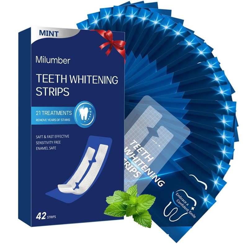 Milumber Teeth Whitening Strips for Sensitive, 42 Strips Whitener Safe Whitestrip, Deep Stains Removal Tooth Whitening, Enamel Safe Non-Slip Dry Strip Technology for Whiter Teeth, Mint
