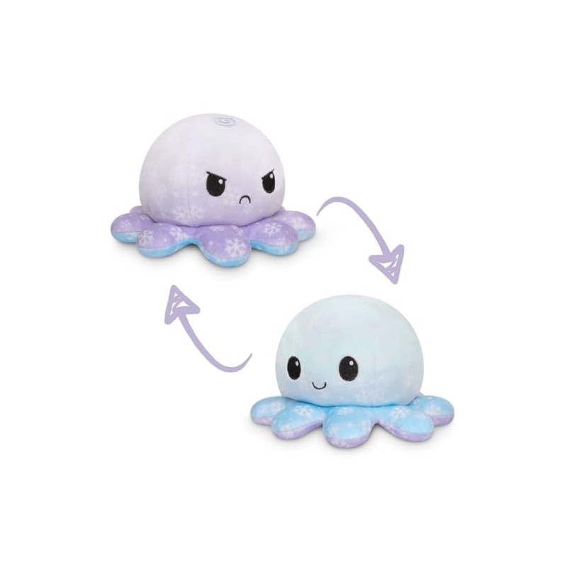 TeeTurtle - The Original Reversible Octopus Plushie - Happy + Angry Snowflakes - Cute Sensory Fidget Stuffed Animals That Show Your Mood - 4 inch, 1 count