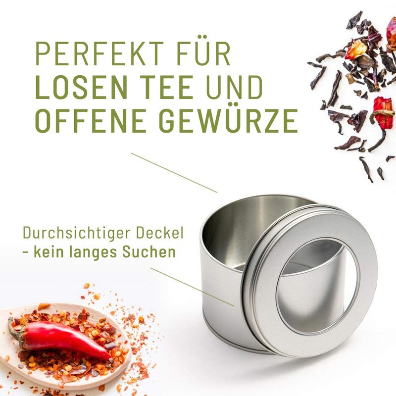 And the best part: through the viewing window in the lid, you can see at any time which tea varieties and spices or what else is in the cans. It couldn't be more practical!