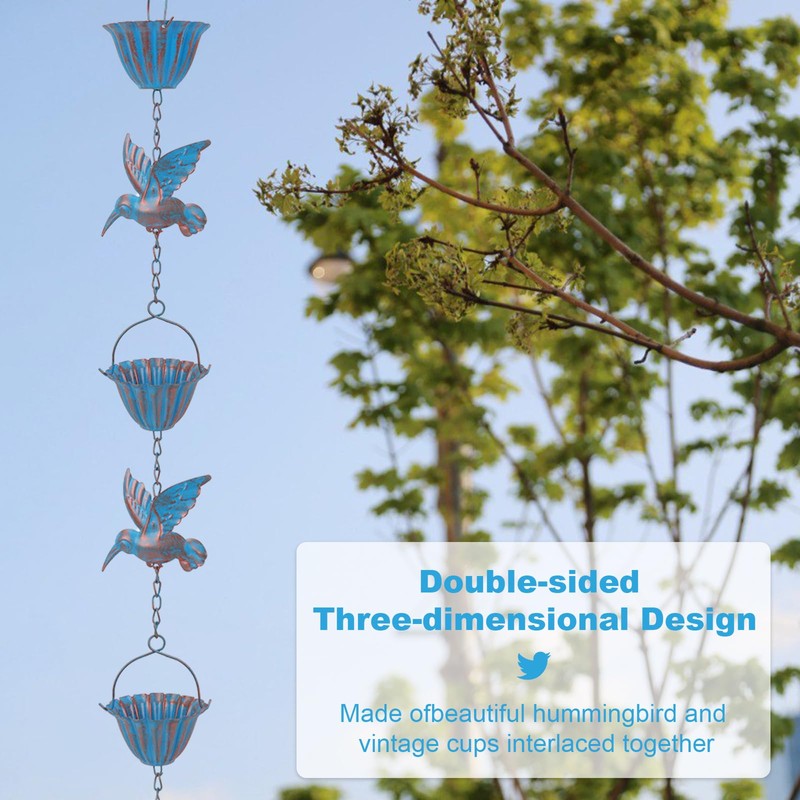 - Multifunctional design: turn rainwater into a hypnotic water feature. Dancing hummingbirds and gentle hand clapping create a warm, peaceful atmosphere that relaxes the body and mind. Rain chains not only replace conventional downpipes, but can also be used for porches and garden decoration.