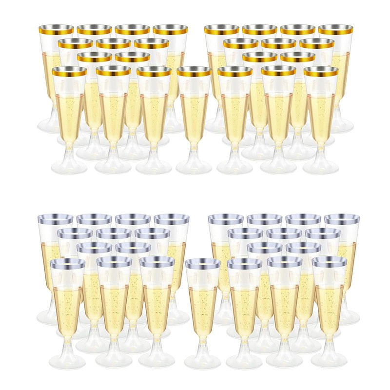 - Copas de plástico para tostar: asegúrate de que todos tengan una copa de champaña desechable dorada para celebrar con un brindis de champaña en la próxima cena u ocasión especial. Los vasos de cóctel de plástico con purpurina dorada son seguros y brillantes.