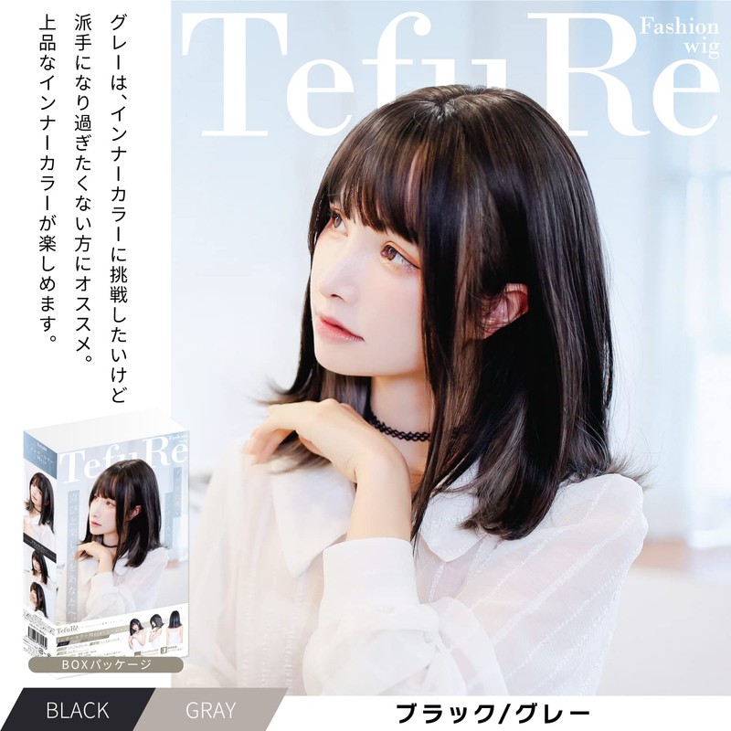 TefuRe HA-6131-BkGy Inner Color Wig, Bob, Semi-Long, Medium, Inner, Lightly Curled, Small Face Effect, Inner Color Midi, Wig Net Included, Black/Gray