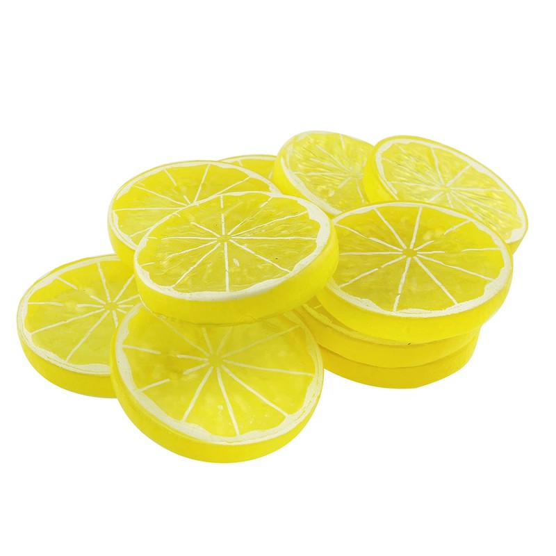 - Package includes: 12pcs artificial yellow lemon slices.Diameter: about 2 inches.Thickness: about 0.3 inches.