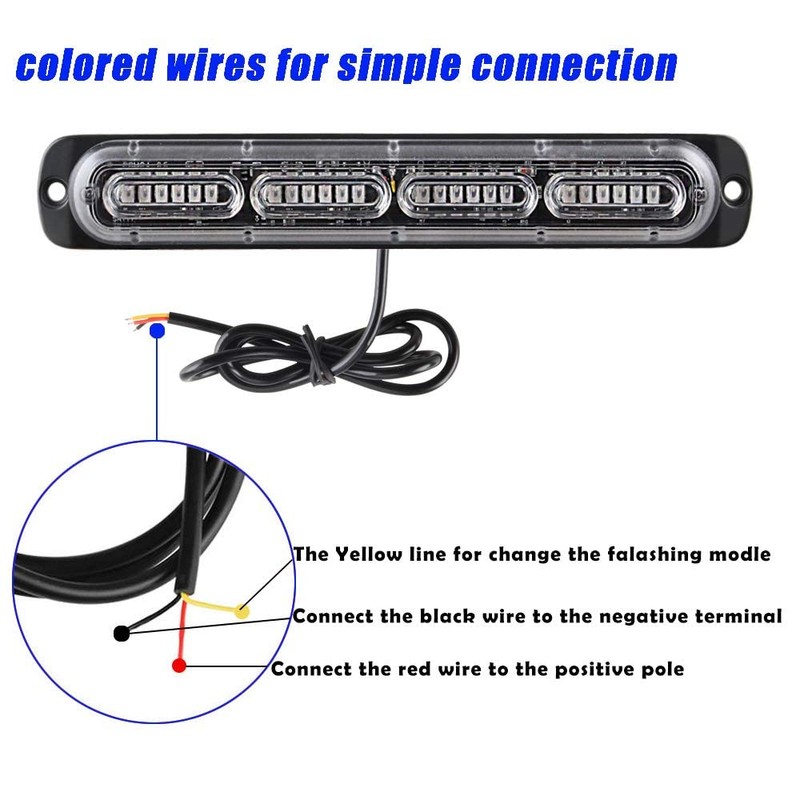 - ❥【Easy 3-wire Installation】Red connect to positive. Black connect to negative. Yellow connect to positive change flashing mode. (When the yellow line touches the red line, the mode will be changed. When the yellow line is released, the mode is fixed.)