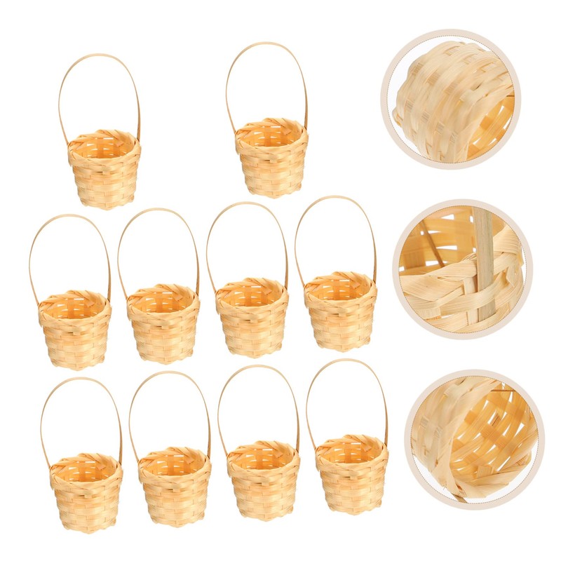 TEHAUX 10Pcs Mini Flower Basket Handle Flower Basket Mini Portable Flower Basket Decorative Basket Tiny Basket Picnic Rustic Furniture Hand-held Basket Candy Micro Scene Small