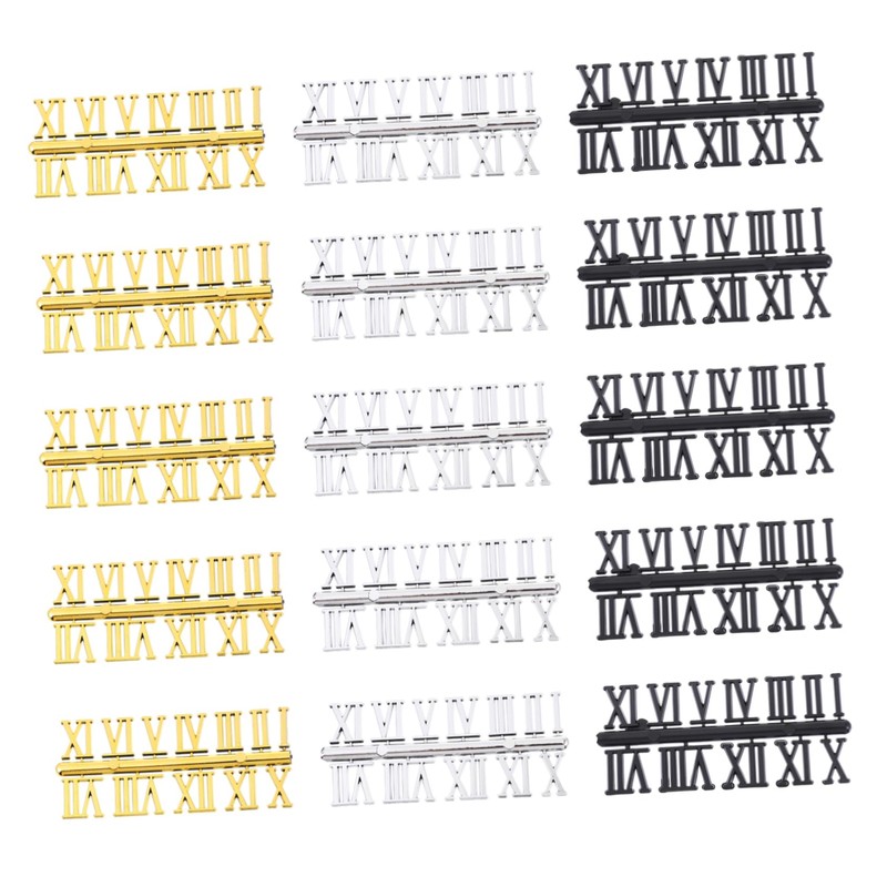 TEHAUX 15 Sets DIY Clock Replacement Roman Arabic Digits Silver Gold and Black for Wall Clocks Easy to Use with Glue for Craft Projects