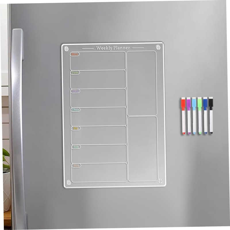 clear calendar Just attach it on your fridge and use it as a planning board to jot down every important thing for you and your family! By using it, you can easily share schedules, to-do lists and reminders with your family!.acrylic meal planner for fridge This magnetic white board is made of acrylic material and is built to last