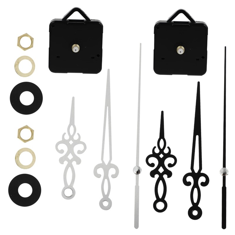 TEHAUX 2sets Silent Quartz Clock Movement DIY Clock Accessories Precision Mechanism with Black Silver Hands and Replacement 2pcs*2