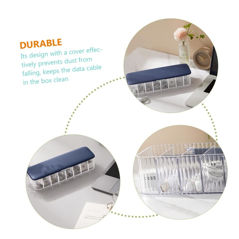TEHAUX Desktop Cable Management Box Lid Blue Dustproof Charging Cable Organizer Multi-Grid Storage Container