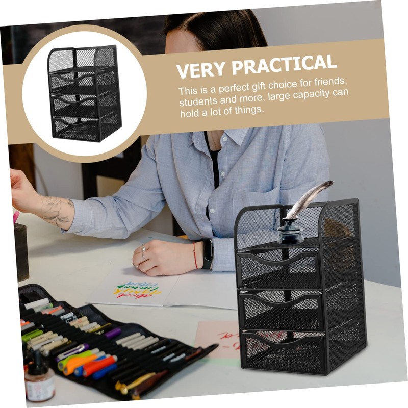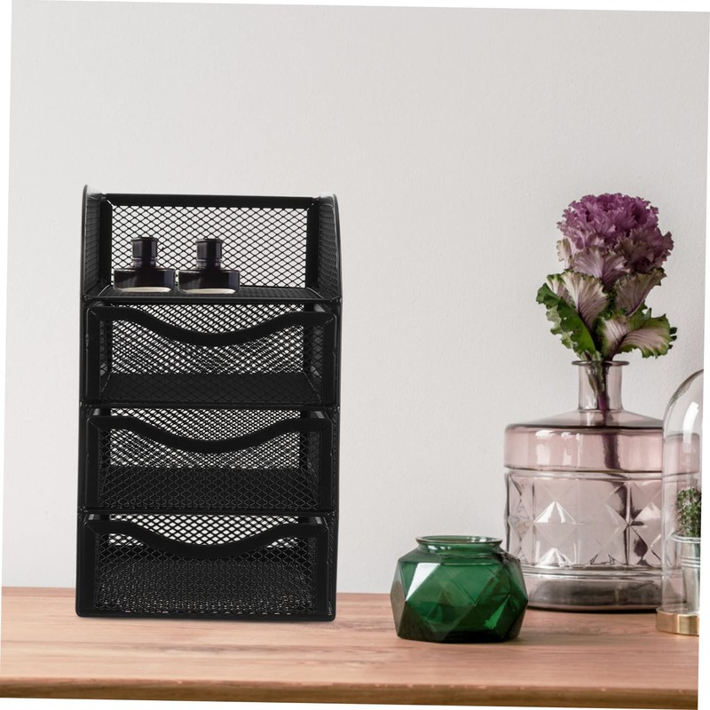 • Wire mesh desk organizer-- separate sliding iron drawers not only hold many your small items, but also keep them separate and tidy,sundries multi-layer storage case