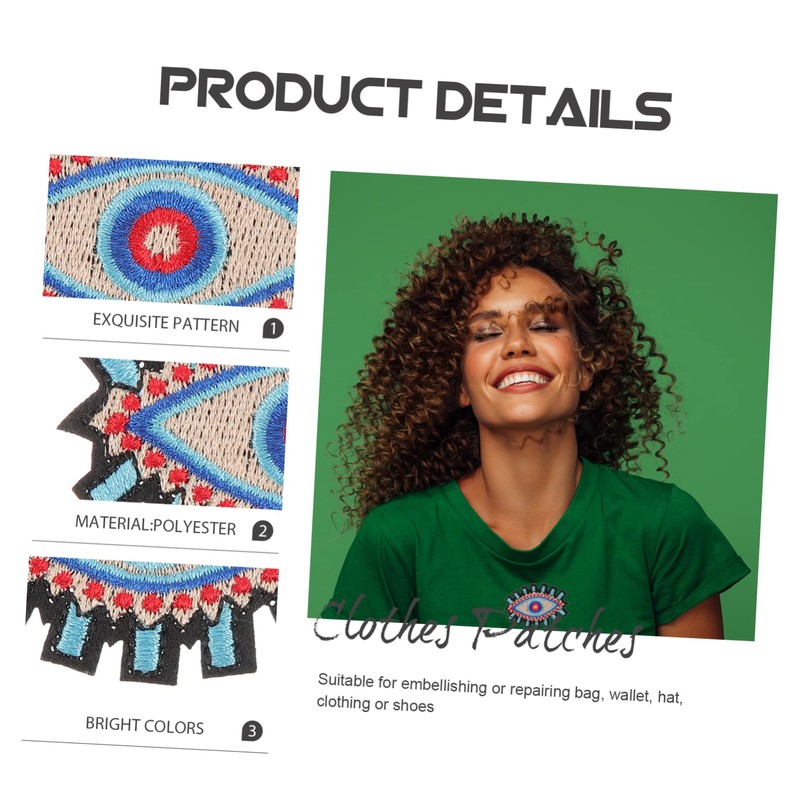 -Suitable for embellishing or repairing bag, wallet, hat, clothing or shoes. Rich details, bright colors, decorate your clothes evil eye clothes.