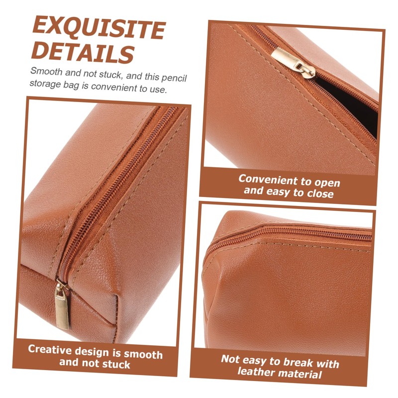 - Made of leather material, you can also use it as a pencil case in your office travel makeup brush bag.