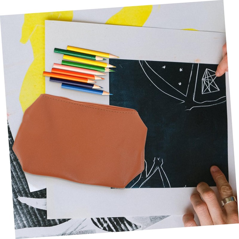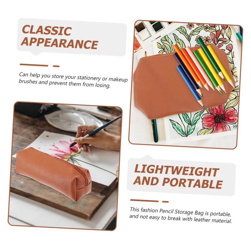 - Made of leather material, you can also use it as a pencil case in your office travel makeup brush bag.