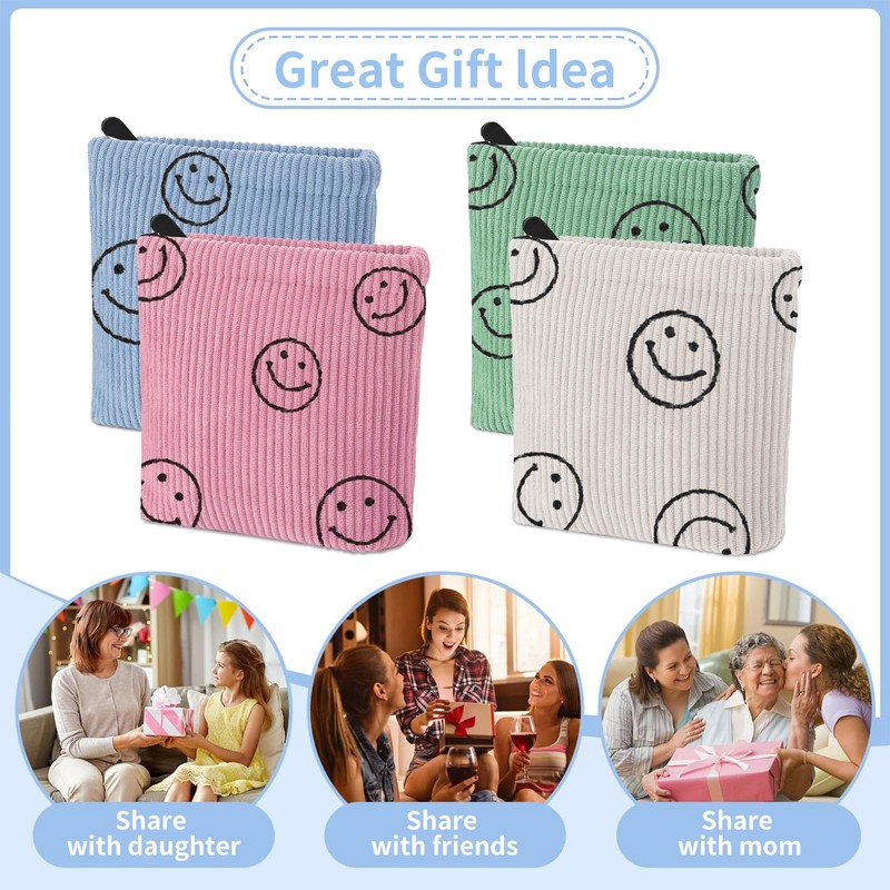 Teircno 2 PCS Preppy Corduroy Period Bag for School Teen Girls, Cute Smiley Face Sanitary Napkin Storage Bag Portable Period Pouch with Zipper, Sanitary Pads Bag Tampons Holder for Purse First Period