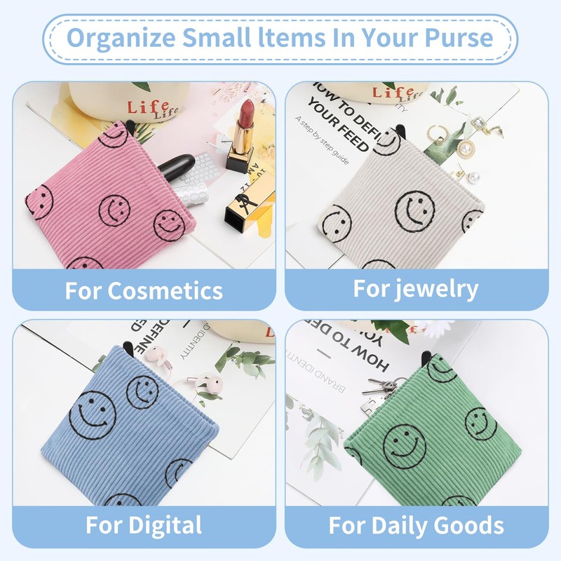 - ✅【Aesthetic Design 】When see the smiley face pattern of the pad pouch, the troubles of your first menstruation will leave you.The menstrual pad bag is easy to store tampons and keep them clean and orderly. The makeup bag also have various colors to for you. Different items can be distinguished by different colored bags.
