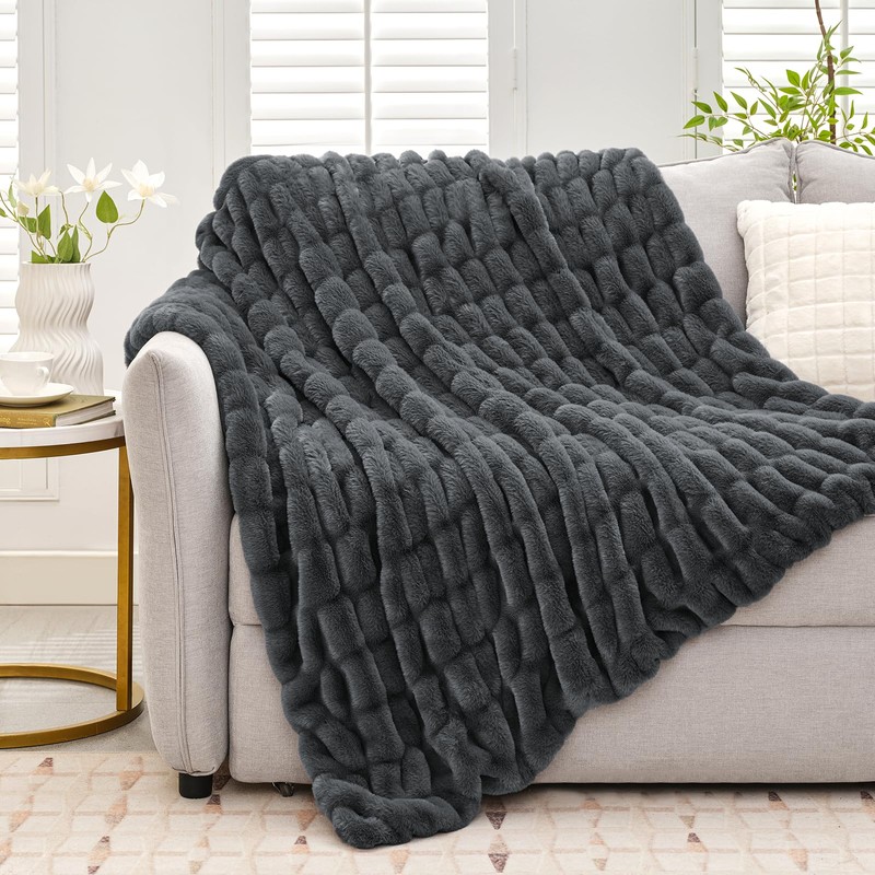 Tejoe Ultra-Soft Faux Fur Throw Blanket 50"x60",Cosy Fuzzy & Plush Delight Blanket for Couch & Bed, Warm Fluffy Thick Blanket for Sofa Bedroom Living Room Home Decor - Dark Grey