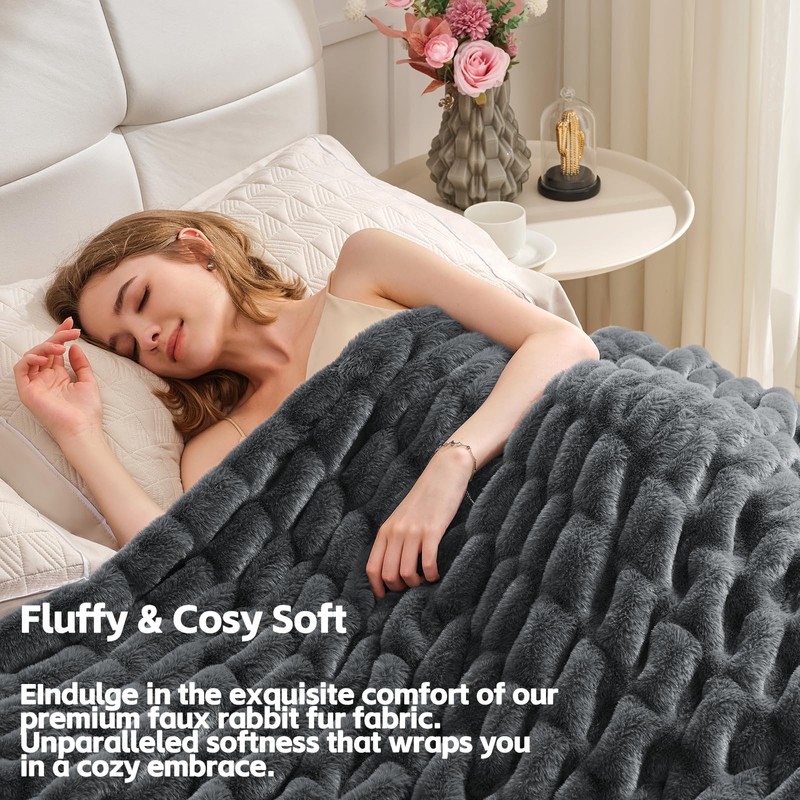 - 【Premium Materials for Superior Quality】The front features ultra-soft plush faux rabbit fur, while the back is made of luxurious crystal fleece. This combination ensures both plushness and durability, making it a long-lasting addition to your home.