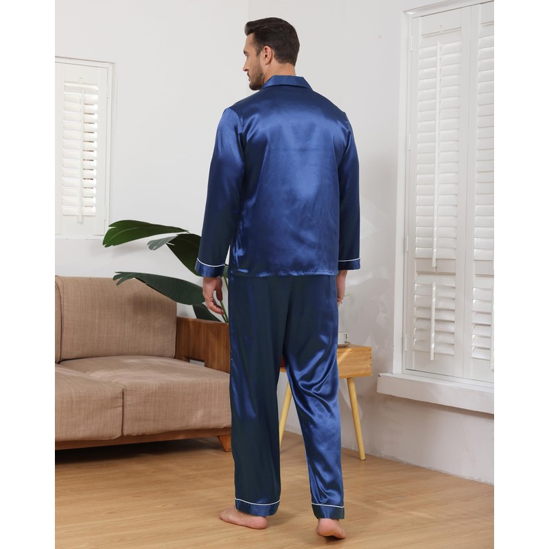 - CHOICE FOR GIFTS : The men's silk pajama set is perfect for Thanksgiving, birthday, wedding, honeymoon, Christmas, Valentine's Day, Father's Day, and anniversaries. The men's silk pajama set is an excellent gift for husbands,making it a thoughtful gift for boyfriends, fathers, brothers, or sons