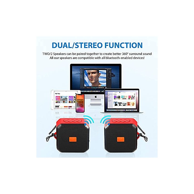 - 🔊【ENJOY ANYWHERE DURING ANYTHING】: Daily life proof with our New IPX5 Standard that supports outdoor gatherings, sports, gym, friends, school, coffee shops. This lets you enjoy a HIFI scene and add a second one for DUAL Stereo mode and let up to 4 connections for sharing.
