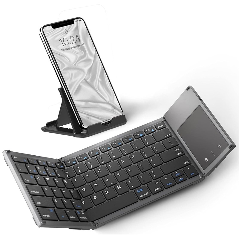 - ⌨【FOLDABLE TRI-FOLD DESIGN】 : Our FULL SIZE Travel Keyboard is Extremely thin and foldable keyboard can be a perfect gift for anyone who often travel or on a business trip. It allows you to operate your mobile devices on the go. Write fast, easy and error-free! It is also a good choice for editors