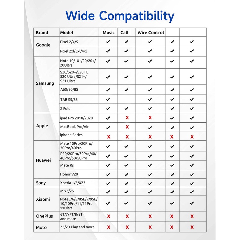 5. The 3.5mm jack supports for most all, phone, music, wired control, and the C-type jack only supports charging.