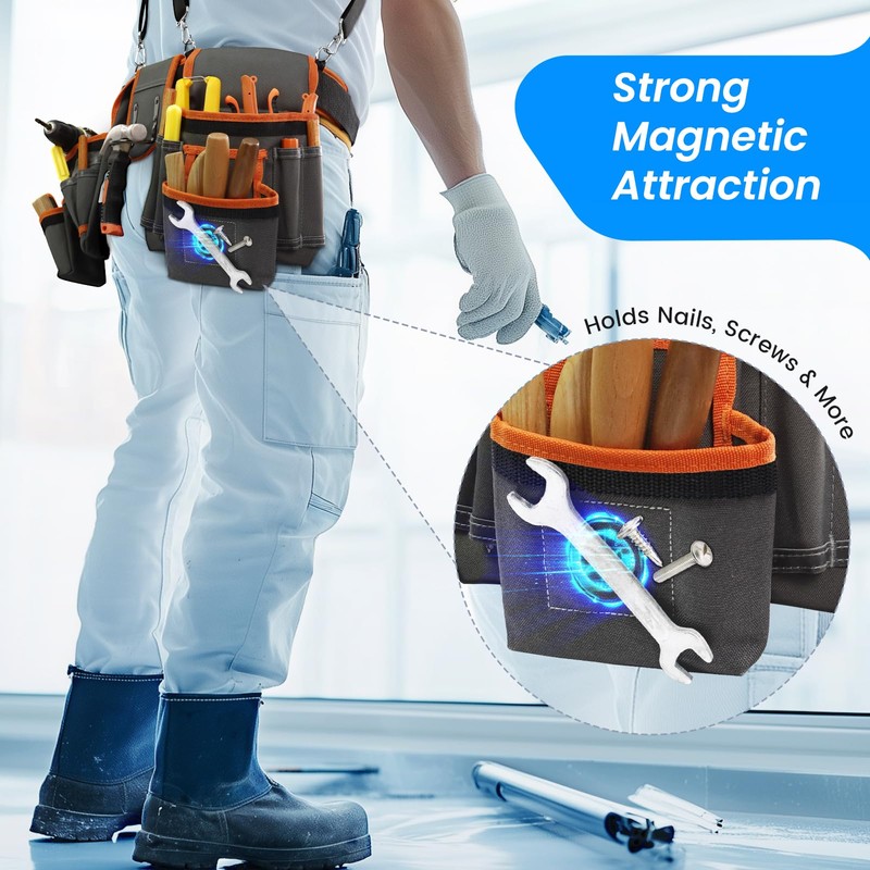 TEKCHIC Tool Belt for Men with Nail Bag, Tape Measure Bag and Hammer HolderMagnetic Tool Bag for Men, Removable and Adjustable Tool Bag for Electricians, Carpenters, Gardeners, B