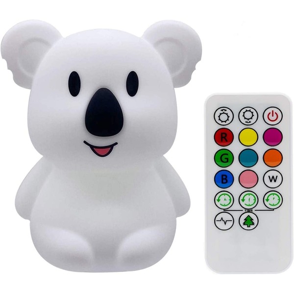 Tekemai Night Light, Children's Night Light, Bedside Lamp for Children, Multi-Colour Light with Remote Control, Shatterproof, Adjustable Brightness and Colour, Timing Function - Large Koala