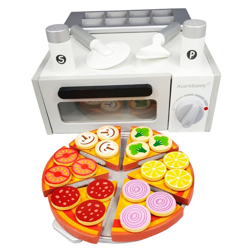 - A FUN TOY PIZZA OVEN SET: The TEKOR TOYS pizza set is made of wood as are the pizza slices, and pizza toppings. All edges are smooth and safe for you child