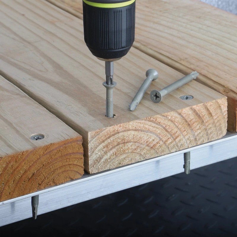 Teks Wood-to-Metal Screws provide secure wood to metal fastening with strong holding power, without the need to pre-drill. The drill-point and flute are designed to remove material efficiently and properly size the hole for self-tapping threads. Special wings ream a hole in the wood to prevent thread engagement during drilling. Teks Wood-to-Metal Screws are for attaching roof/subfloor decking, trailer beds to frame, and wood headers to steel frame.